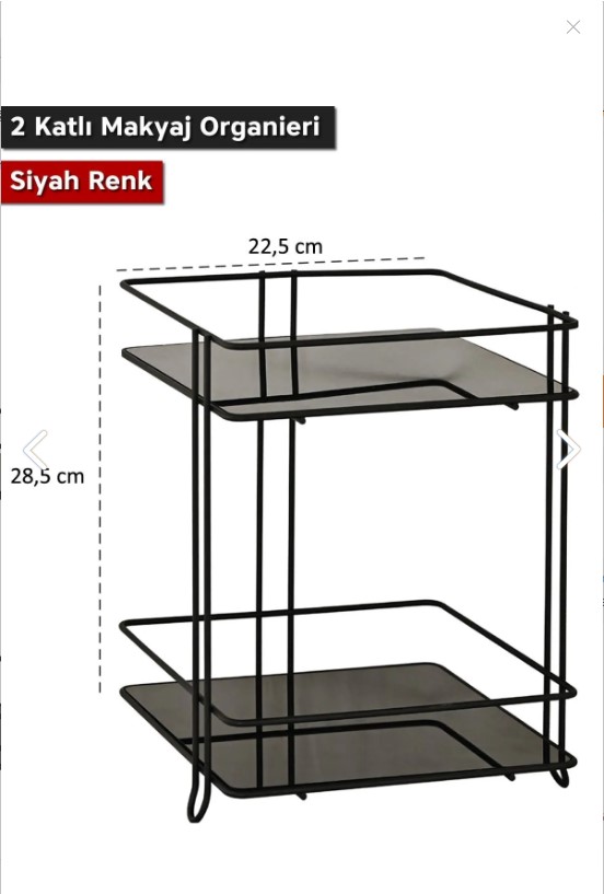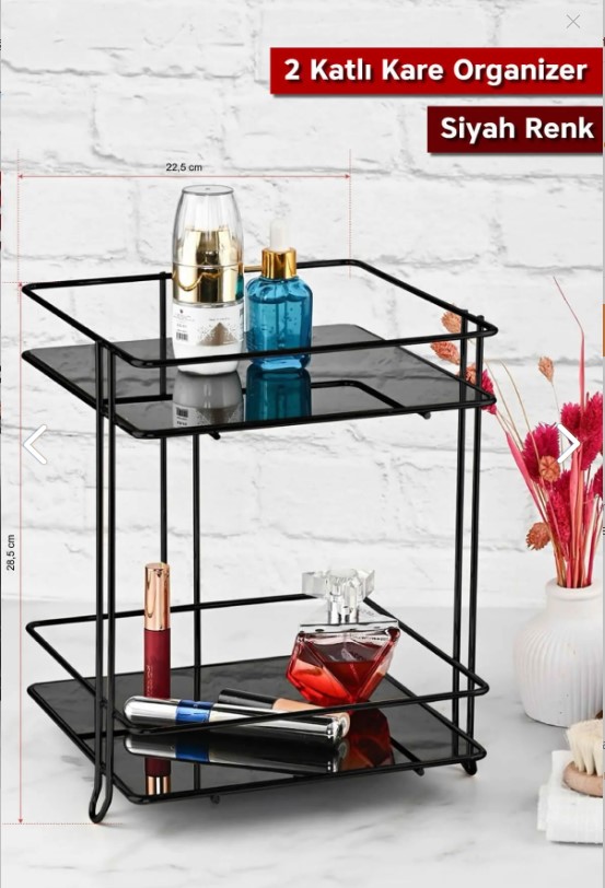 Çift Katlı Tasarım: Bu organizer, makyaj ve takılarınızı düzenlemek için iki katlı bir yapıya sahiptir. Üst kat, fırçalarınızı, rujlarınızı ve diğer sık kullandığınız makyaj ürünlerinizi düzenlemek için idealdir. Alt kat ise takılarınızı, küpelerinizi, bileziklerinizi ve kolyelerinizi saklamak için geniş bir alan sunar. ; Siyah Renkli Metal Malzeme: Organizer, dayanıklı ve şık siyah rengi metal malzemeden yapılmıştır. Bu şık tasarım, banyo veya makyaj alanınıza zarif bir görünüm katar. ; Kare Şekilli Tasarım: Kare şeklindeki bu organizer, kompakt bir yapıya sahiptir ve masanızda veya makyaj masanızda az yer kaplar. Aynı zamanda modern bir dokunuş sağlar. ; Makyaj ve Takılarınızı Düzenleyin: Bu organizer, makyaj malzemelerinizi ve takılarınızı karmaşadan uzak tutmanıza yardımcı olur. Her şeyi düzenli bir şekilde saklamak için ideal bir seçenektir. ; Taşınabilir ve Kullanışlı: Hafif ve taşınabilir olan bu organizer, istediğiniz yere kolayca taşınabilir. Banyoda, yatak odasında veya makyaj masanızda kullanımı kolaydır. ; Kolay Temizlik: Metal yapısı, temizliği kolaylaştırır. Bir bezle silerek veya hafifçe durulayarak kolayca temizlenebilir. ; Harika Bir Hediye Seçeneği: Makyaj ve takı tutkunları için harika bir hediye seçeneğidir. Şık tasarımıyla sevdiklerinizi mutlu edebilirsiniz.