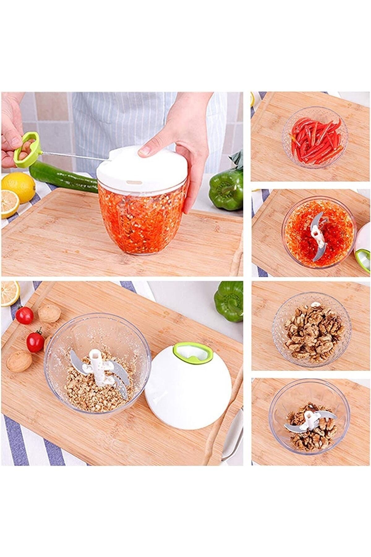 5 Bıçaklı İpli El Rondosu | Doğrayıcı Meyve, Sebze, Soğan Doğrama. ; Çek bırak pratik doğrayıcı sebzelerinizi hızlı ve kolayca kesebilmenizi sağlayan 5'lü bıçak yapısı ve kullanım kolaylığı sağlayan ipli döner mekanizması sayesinde lezzetli tatlar üretebilirsiniz. ; Farklı malzemeler kullanarak birbirinden güzel soslar hazırlayabilirsiniz. Birkaç saniyede soğan, sarımsak, havuç ve daha fazlasını doğrayabilirsiniz. ; Kompakt ve hafif yapısı sayesinde mutfağınızda çok az yer kaplar. ARVALE HOME. Temizliği çok kolaydır, bulaşık makinesinde ve elde yıkamaya uygun. ; Kamp, karavan, seyahat vb. durumlarda rahatlıkla yanınızda taşıyabilirsiniz. Ergonomik tasarımı sayesinde taşıması kolay. ; Sos hazırlama, kuruyemişleri öğütme, sebze doğrama vb. kullanımlar için uygundur. ; Ürünlerinizi öğütmek ve doğramak için elektiriğe ihtiyaç duymaz her an kullanabilirsiniz. ; Paslanmaz çelik bıçakları uzun ömürlüdür. ARVALE HOME. ; Ürün Özellikleri: - Kaliteli plastik gövde - Paslanmaz çelik bıçak. ; Ürün boyutları: 11 cm x 15 cm. ;