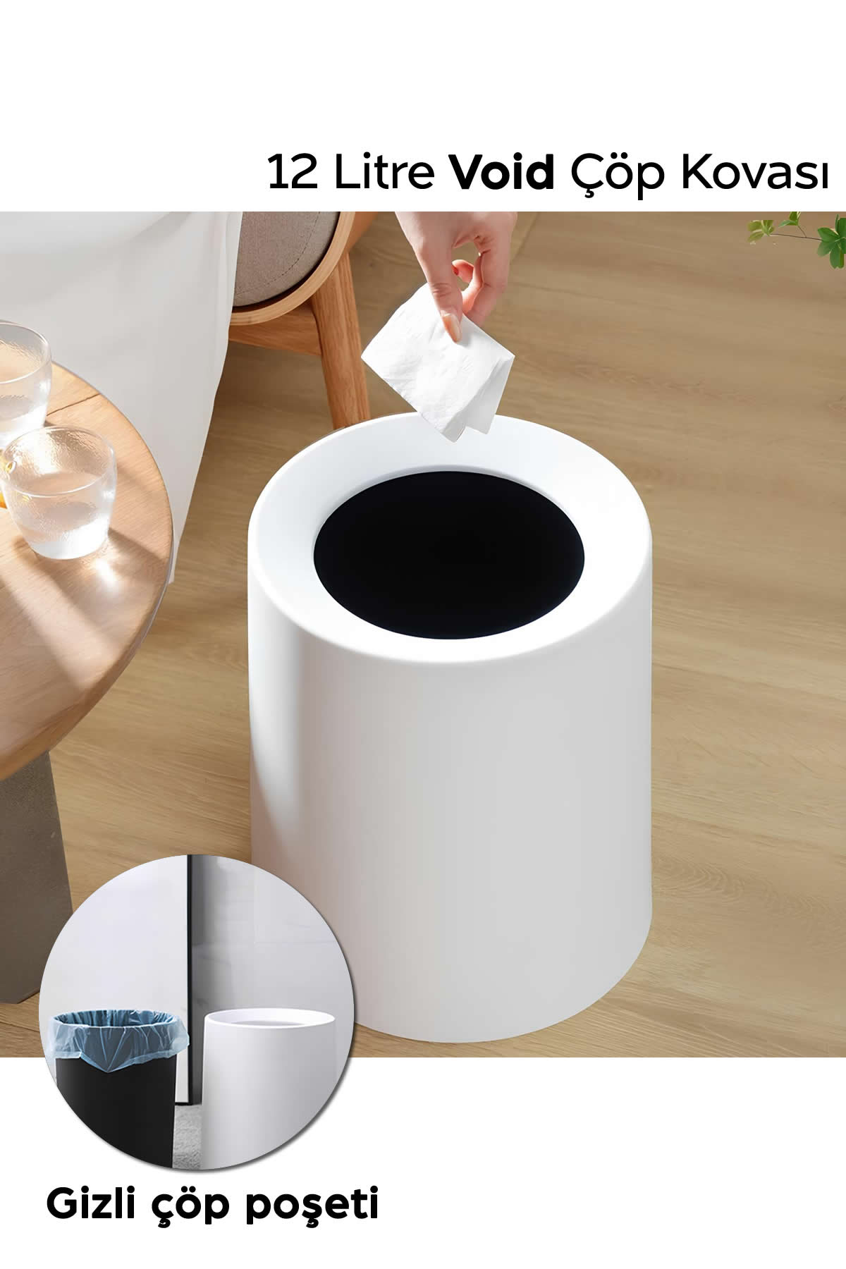 ARVALE Void Hotel Tipi Sihirli Iç Kovalı Çöp Kovası Ev Mutfak Banyo Ofis Çöp Kovası | Çöp Poşeti Gözükmez