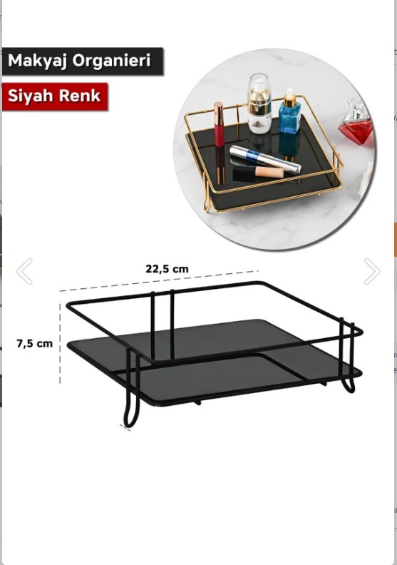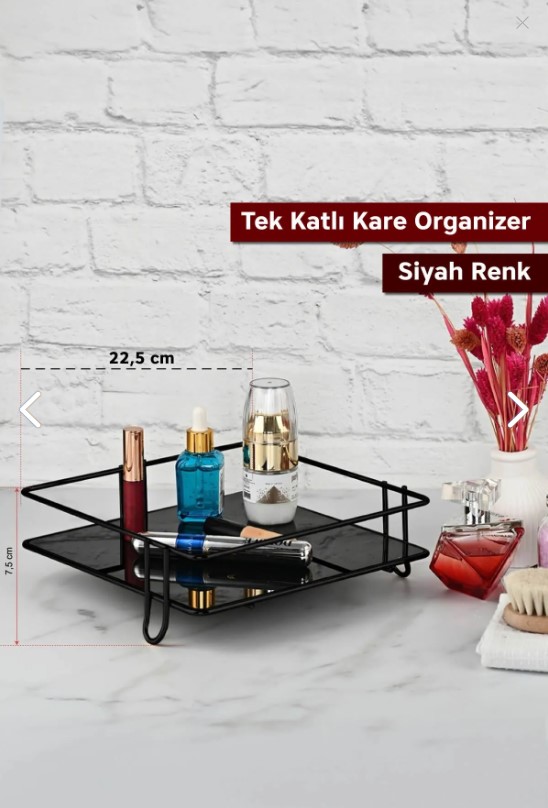Tek Katlı Tasarım: Bu organizer, makyaj ve takılarınızı düzenlemek için tek katlı bir yapıya sahiptir. ; Siyah Renkli Metal Malzeme: Organizer, dayanıklı ve şık siyah rengi metal malzemeden yapılmıştır. Bu şık tasarım, banyo veya makyaj alanınıza zarif bir görünüm katar. ; Kare Şekilli Tasarım: Kare şeklindeki bu organizer, kompakt bir yapıya sahiptir ve masanızda veya makyaj masanızda az yer kaplar. Aynı zamanda modern bir dokunuş sağlar. ; Makyaj ve Takılarınızı Düzenleyin: Bu organizer, makyaj malzemelerinizi ve takılarınızı karmaşadan uzak tutmanıza yardımcı olur. Her şeyi düzenli bir şekilde saklamak için ideal bir seçenektir. ; Taşınabilir ve Kullanışlı: Hafif ve taşınabilir olan bu organizer, istediğiniz yere kolayca taşınabilir. Banyoda, yatak odasında veya makyaj masanızda kullanımı kolaydır. ; Kolay Temizlik: Metal yapısı, temizliği kolaylaştırır. Bir bezle silerek veya hafifçe durulayarak kolayca temizlenebilir. ; Harika Bir Hediye Seçeneği: Makyaj ve takı tutkunları için harika bir hediye seçeneğidir. Şık tasarımıyla sevdiklerinizi mutlu edebilirsiniz.